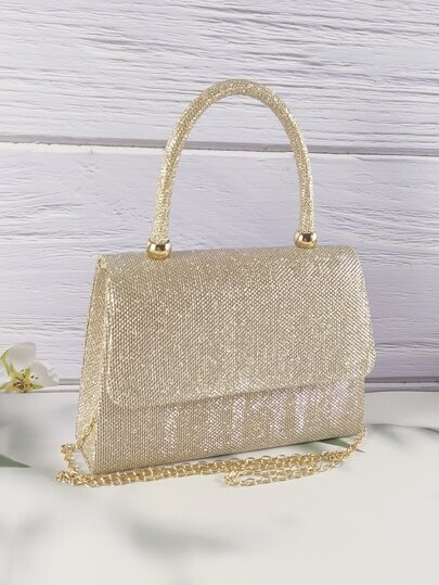 Gold Sparkly Handheld Evening Bag - Gold - View 1