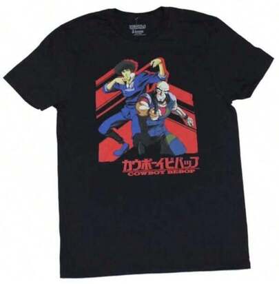 Graphic T Shirts Funny T Shirt Cowboy Bebop Adult New T-Shirt - Spike & Jet In Red Outline,Machine Washable Comfortable Outdoor Casual Wear,Round Neck Short Sleeve T-Shirt Fashion Graphic Tees,Fashion Print Casual T-Shirt,Made Of Pure Cotton, Easy To Match, Showcases Your Style Effortless Styling, Showcase Your Unique Style - Black - View 1