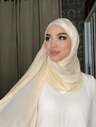 1 Pc Women's Plain Color Chiffon Soft Pearl Headscarf, Casual Arab Conservative Solid Color Long Scarf Suitable For Daily Wear For Dress