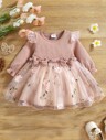 Autumn/Winter New Baby Girl Floral Ruffle Collar Long Sleeve Casual Cute Jacket, Contrast Color Petal Collar Design, Fashionable And Adorable Children Leather Jacket, Stylish And Cute. Girls Petal Collar Soft Leather Jacket, Khaki Brown Cream Collar, Bubble Sleeves With Airy Feel, Praised When Outing, Adorable
