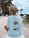 Ladies' New Spring And Summer Turtle Print Casual Round Neck Blue Short Sleeved T-Shirt With Fashionable Vacation Style Suitable For Daily Vacation Wear. Pink Top Black Top Graphic Tees Women