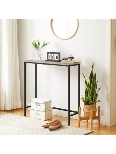 HOOBRO Slim Console Table For Hallway, Metal Frame, Compact Display Sofa Table For Small Spaces, Entryway, Living Room, Sturdy, Greige And Black - Grey - View 1