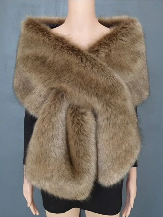 1pc Faux Fur Cow Print Shawl Scarf, Extra Long One-Shoulder Cloak Poncho, Suitable For Bridal Wedding, Evening Gown, Autumn/Winter Versatile Outerwear