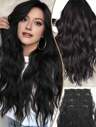 18-30inch Long Wavy Clip-In Hair Extensions, 7pcs/Set Thick Hair Pieces With Invisible Clips, Soft Synthetic Fiber, Black, For Women