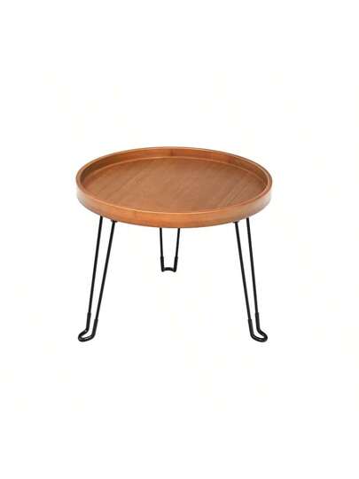 HYNAWIN Foldable Tray Table,Round Side Table With Metal Legs,Bamboo Portable Coffee Table For Living Room, Patio, Office,Camping - Brown - View 1