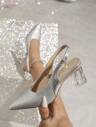 Women's Wide Width Silver Rhinestone Pointed Toe Slip-On Shoes, Transparent Chunky Heel Mules, Plus Size Bride Bridesmaid Wedding Shoes, Elegant Party Formal Dress Comfortable Evening Cocktail Club Commute Shoes, Suitable For Various Occasions