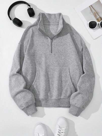 INAWLY Half Zip Kangaroo Pocket Sweatshirt - Grey - View 1