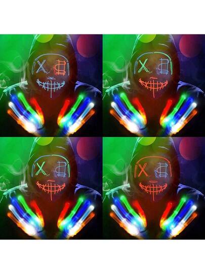 Halloween Costume Set With LED Light Gloves And Mask, Featuring Ghost Face Terrifying Atmosphere For Bar Party Role Play, Including  Mask And Dollar Shape Light-Up Mask - Multicolor - View 1