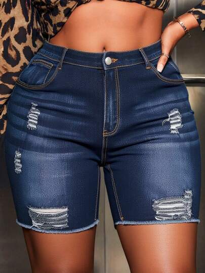 SHEIN CURVE+ Plus Size Women Elastic Blue Personalized Fashion Skinny Jeans - Blue - View 1
