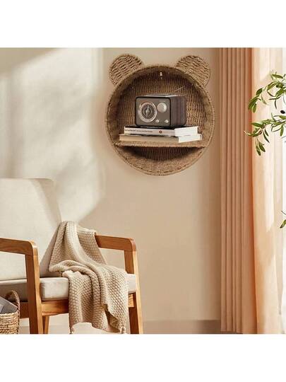 Handmade Woven Straw Rope Wall Hanging Storage Basket, Home Decor Organizer - Brown - View 1