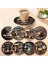 6pcs Black & Gold Sun & Moon Wooden Coasters - Heat Resistant, Suitable For Home, Afternoon Tea & Coffee - Ideal Christmas & Halloween Gift, 6pcs/Set, 1800pcs/300sets