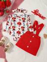 2pcs/Set Cute Baby Boy Bear Print Long Sleeve Bodysuit & Corduroy Bib Pants, 4-Season