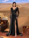 Faeriesty Haute Glamour Luxurious One-Shoulder Evening Gown With High Slit & Asymmetrical Side Sweep Train – Sequin-Embellished Mermaid Silhouette For Gala Events, Red-Carpet Galas, Black-Tie Weddings, Opera Premieres, Luxury Award Ceremonies