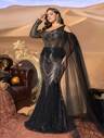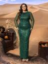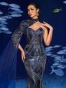 Faeriesty SHEIN X Hannahelzahed Haute Glamour Luxurious Shimmering Beaded Sequin Maxi Cape Dress With Fish Tail Hem - Perfect For Weddings, Red Carpet Events, Desert Weddings, And Celebrity-Style Parties