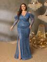 Faeriesty Glamour Long Sleeve Strapless Pearl-Embellished Mermaid Evening Gown For Women, Back Lace-Up Formal Dress With Sheer Mesh & Sequin Detailing For Wedding Receptions, Black Tie Galas, Red Carpet Events, Charity Balls, And Formal Banquets New Year Outfit