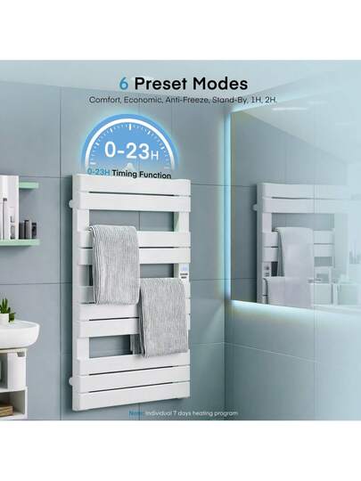Heated Towel Rail Electricfor Bathroom, 6 Preset Modes, Individual 7-Day Heating Programme, With Timer, Temperature Multi-Level Adjustments, Hardwired/Plug-In - UK Plug(220-240V) - View 4