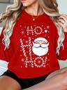 Women's Christmas Reindeer Sequin Applique T-Shirt Long Sleeve Rib-Knit Pullover Round Neck Regular Fit Warm Lined T-Shirt