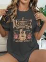 Howell Ladies Round Neck Short Sleeve T-Shirt, Suitable For Daily Wear, Music Festival Printed Pattern, Comfortable And Soft Fabric, Ladies T-Shirt