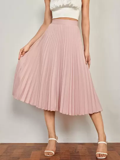 SHEIN PETITE High Waist Pleated Skirt - Dusty Pink - View 1