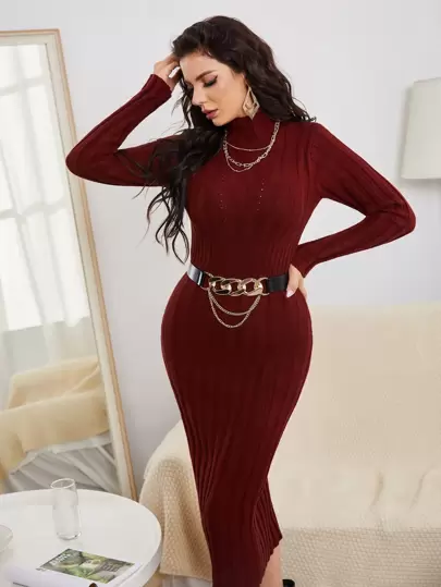 SHEIN High Waist Jumper Dress Without Belt - Burgundy - View 1