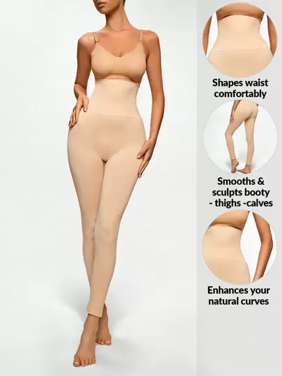 SHAPORA High Waist Tummy Control Butt Lifting Seamless Shapewear Leggings - Apricot - View 1