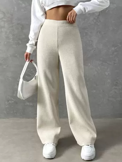 SHEIN Unity High Waist Wide Leg Trousers - Beige - View 1