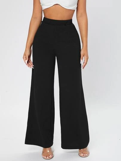 SHEIN PETITE High Waist Wide Leg Trousers - Black - View 1