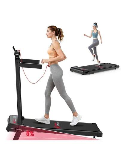 Homefitnesscode 5% Incline Walking Pad Treadmill With Foldable Handrail, Portable Compact Flat Mini Small Fold Away Running Machine, Quiet 2.5 HP Motor, LED Display Remote Control, For Home Office Gym - UK Plug(220-240V) - View 1
