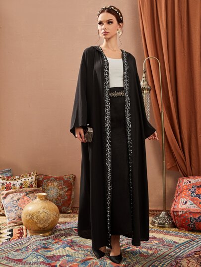Al Najma Hooded Tape Detail Abaya - Black - View 1