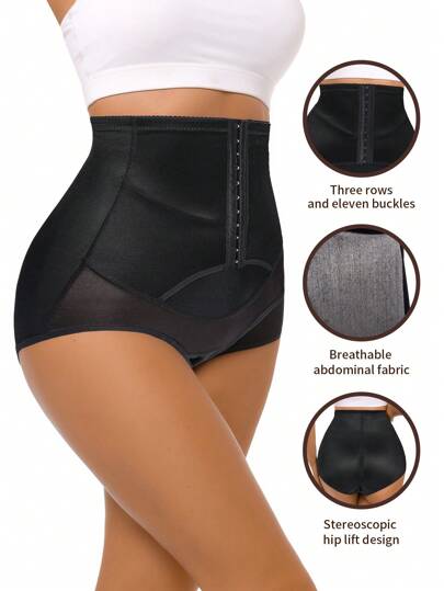 Hook and Eye High Waist Shapewear Panty - Black - View 1