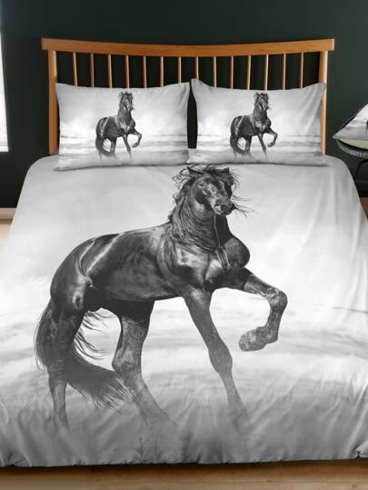 Horse Print Duvet Cover Set Without Filler - Multicolor - View 8