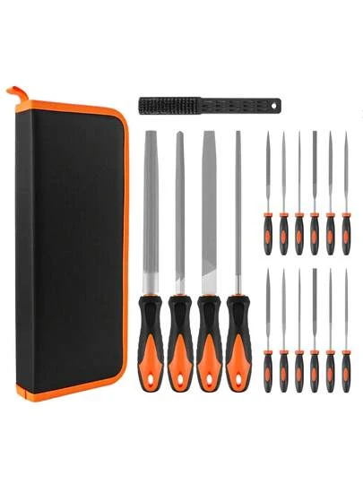 Huini 17PCS Metal File Set Metal Filler For Steel, 12 Needle Files With Storage Bag, Steel Brush, Wood Files With Handle For Woodworking, Metalworking - Orange - View 1