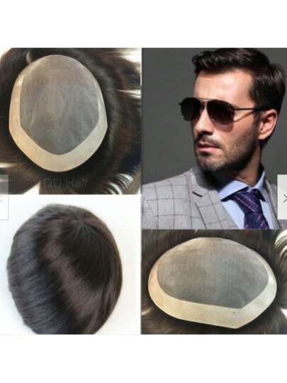 Human Hair Synthetic Blend Wigs - Brown - View 1