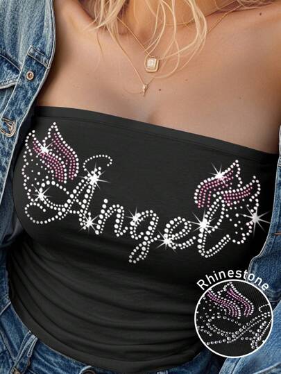 INAWLY Women's Rhinestone Decor Fitted Cropped Vest, Suitable For Everyday Wear - Black - View 1