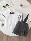 SHEIN Baby Boys' Gentleman Suit Three-Piece Set, Includes Bowtie Dress Shirt, Double Breasted Vest And Pants, Suitable For Birthday, Wedding, Christening And 1st Birthday Party