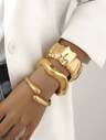 1pc Gold-Colored Fashionable & Minimalist Ladylike High-End Shiny & Versatile Serpentine-Shaped Zinc Alloy Streamline & Waterdrop Contour Bracelet With Spring & Elastic Closure Suitable For Elegant, Gorgeous & Minimalist Men's & Women's Daily & Party Outfits Such As Friend Gathering, Business, Commuting & Party