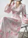 Plus Size Floral Print Sweetheart Neckline Lantern Sleeve Evening Dress Elegant Long Sleeve Formal Prom Wedding Guest Gown, For Graduation, Dinner Party Dress