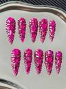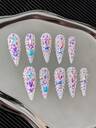 Ultra-Long 45mm Stiletto Nails French Handmade Press-On Nails With Multicolor Chains, Rhinestones & Gold Beads Accents, Gradient Ombre, Creative Hand-Painted 3D Patterns & Y2K Color-Blocking Designs - Full Cover Artificial DIY Glitter False Nails For Parties, Clubs, Travel, Beach, Daily Wear, Festivals, Weddings, Work Events & Special Occasions - 10 Pieces/Bag