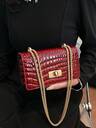 Burgundy Minimalist Solid Color Women's Shoulder Bag, Flap Shoulder Bag, Baguette Bag, Handbag, Underarm Bag, Square Bag, 1pc PU Leather Texture Bag, Patent Leather Crocodile Grain PU Material Fashion Multifunctional Elegant Sexy Suitable For Handheld, Shoulder, Work, Business, Commute, Outdoor, Travel, Bag Size: 27*15*6cm, Fashionable Burgundy Bag , Red Bag