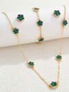 5pcs/Set Lucky Clover Design Necklace, Earrings, Bracelet And Ring