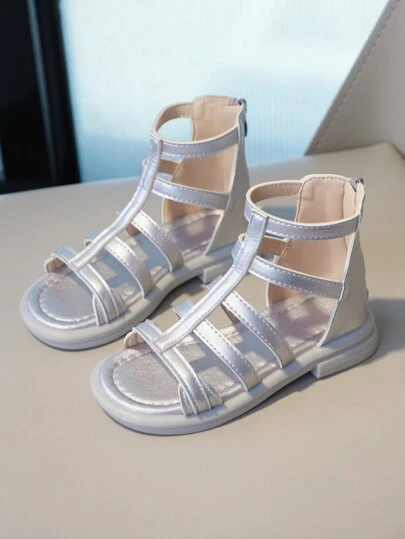 Kids' Silver Flat Roman Sandals - Silver - View 1