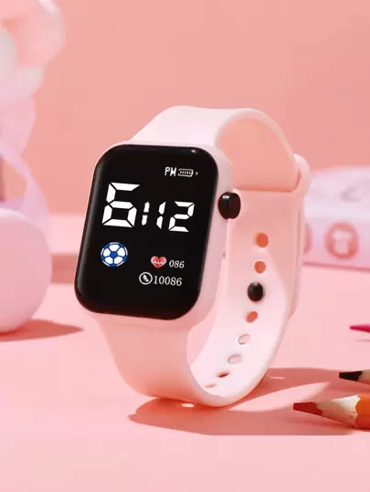 Kids Water Resistant LED Electronic Watch - Pink - View 1