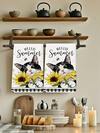 2 Pcs Spring Summer Kitchen Towels Orange Pink White Daisy Pink Tulip Cat Sunflower Pattern Handkerchiefs Farmhouse Style Kitchen Decor Cloths
