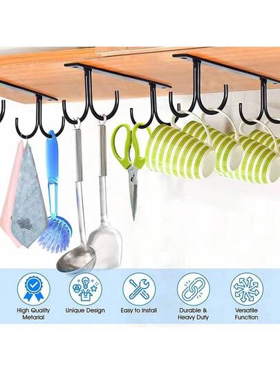 Kitchen Cup Shelf, Hanging Cup Rack, Cup Holder For Wine Cabinet, Upside Down Coffee Cup Shelf - Black - View 1