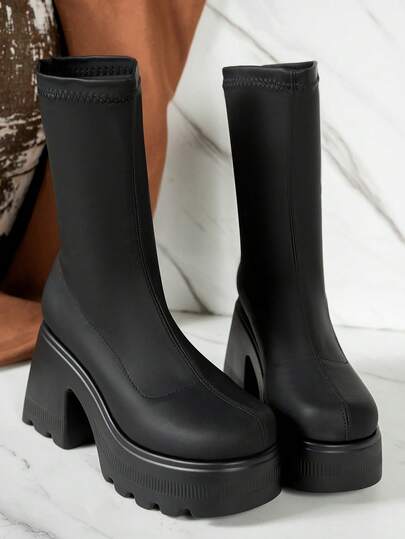 Knee-High Elevator Boots For Petite Women, New Autumn Elastic Thick Bottom Skinny Tall Riding Boots - Black - View 2