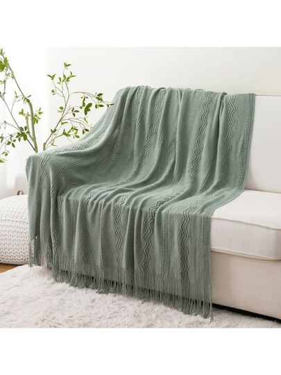 Knitted Throw Blanket, Suitable For Sofa, Bohemian Home Decor, Bed, Chair, Sofa Decoration - Sage Green - View 1