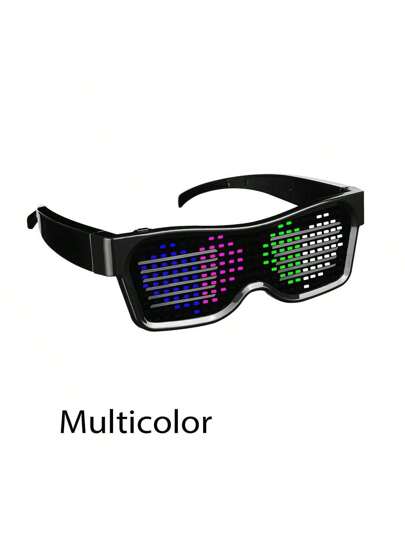LED Glasses,APP Connected LED Display Smart Glasses USB Rechargeable DIY Funky Glasses For Party Club DJ Halloween - Black - View 1