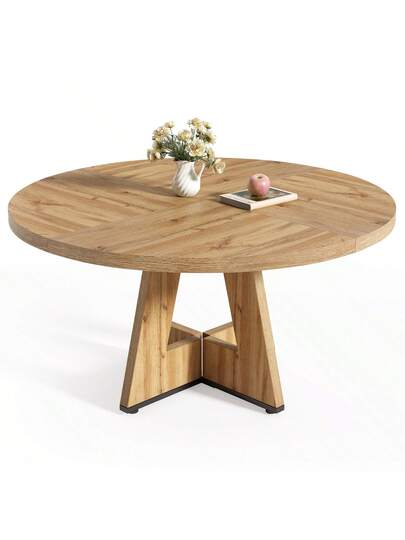 LITTLE TREE Round Dining Table Kitchen Table, 120 Cm Dining Room Tables For 4 People, Farmhouse Dinner Table With Wooden Table Top And Legs (Only Table) - Beige - View 1