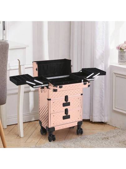 LIVINGANDHOME Living And Home 3-In-1 Luxury Cosmetic Trolley Case - Expandable Makeup Organizer With Lockable Drawers (57cm, Diamond Rose Gold) - Diamond Rose Gold 37cm W X 24cm D X 57cm H - View 3