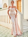 LOVE&LEMONADE Elegant Burgundy Velvet Off Shoulder Slit Long Sleeve Draped Backless Criss-Cross Tie Maxi Formal Evening Dress